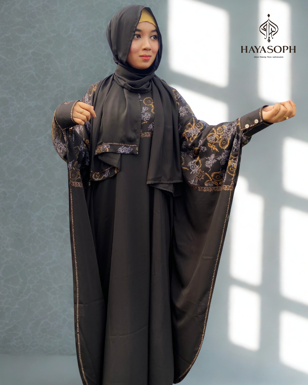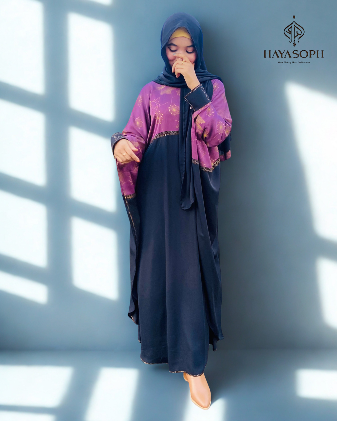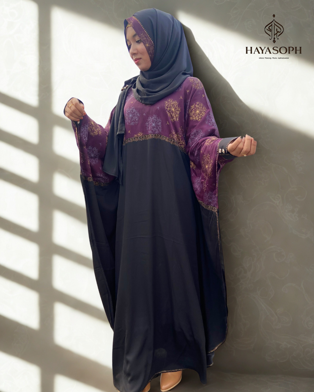 • Style: Flowy, modest silhouette with elegant finish