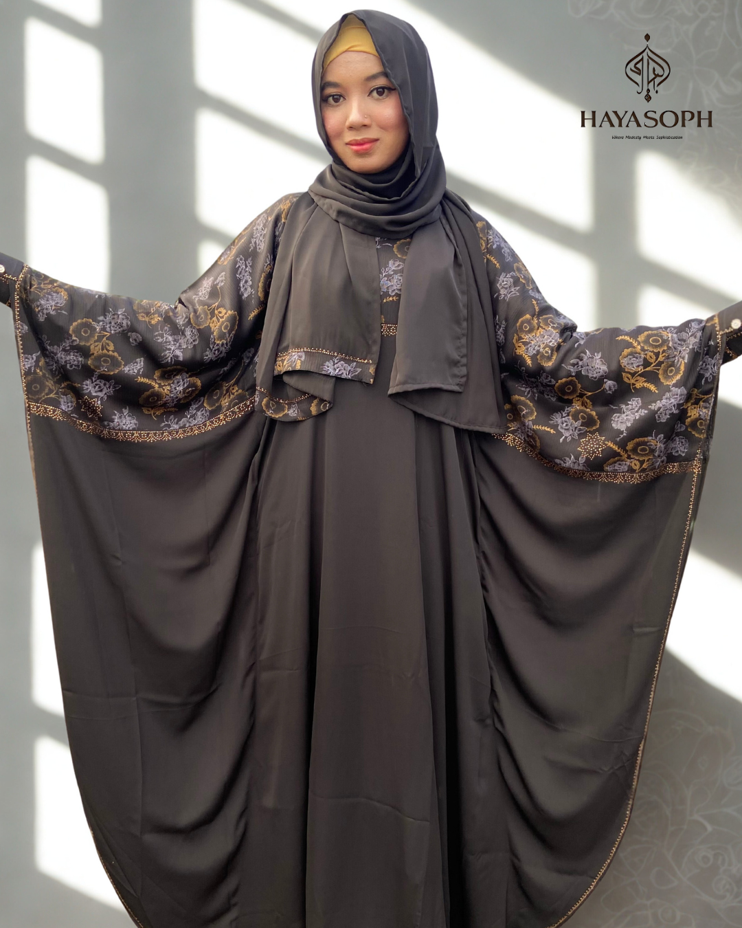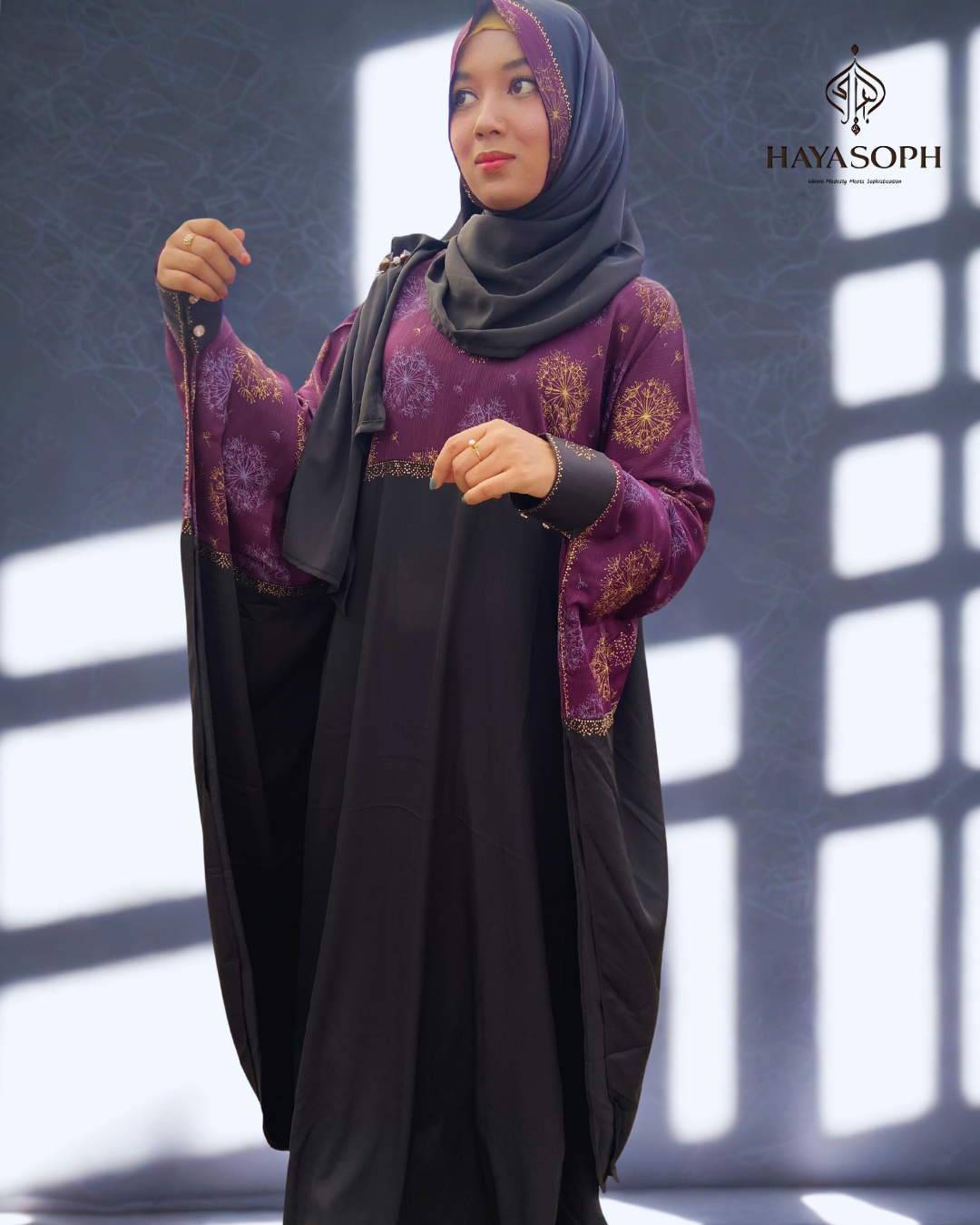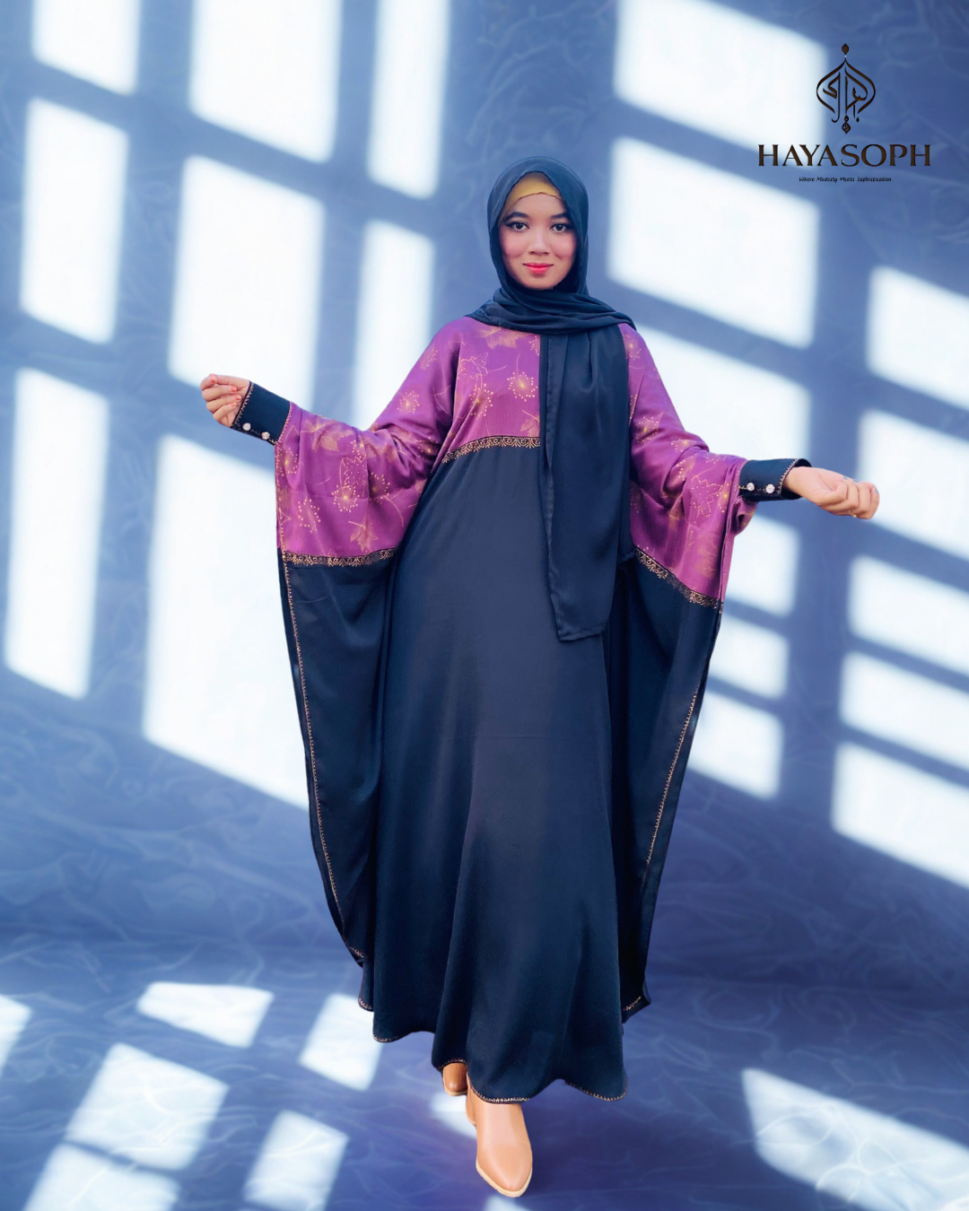 • Style: Flowy, modest silhouette with elegant finish
