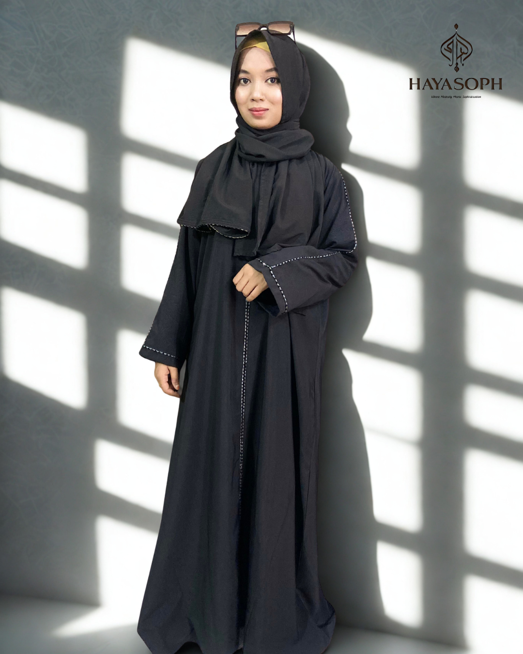 Experience the perfect blend of modesty and modern elegance with the Zareen Grace Borka. Designed with a soft, flowing silhouette and detailed front seam stitching, this borka brings both comfort and sophistication to your daily wear.